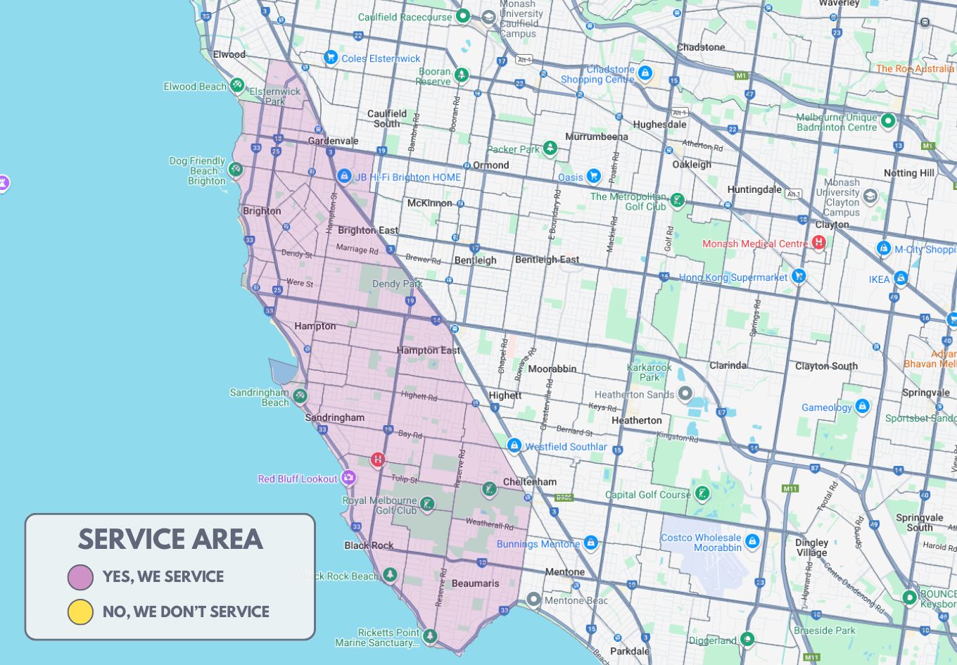 We service all suburbs within the Bayside area, including: